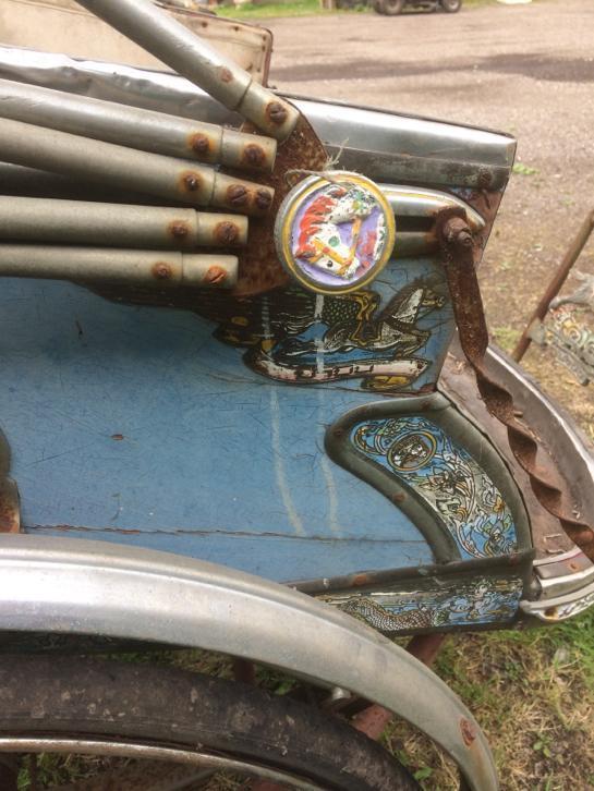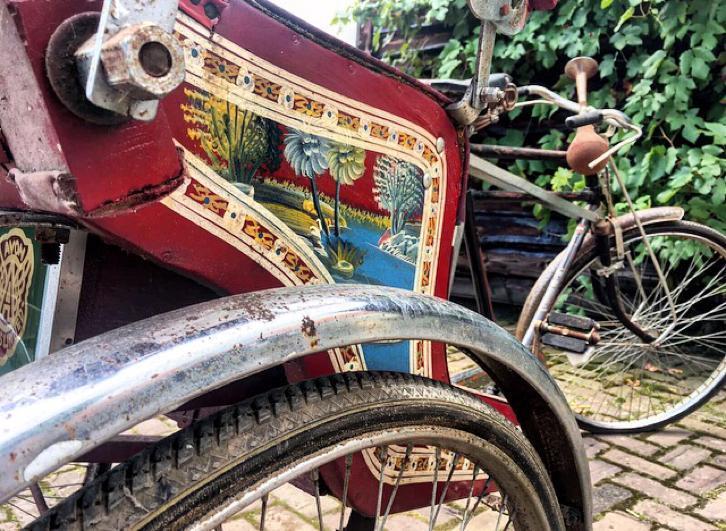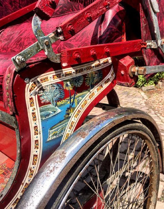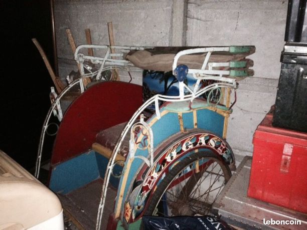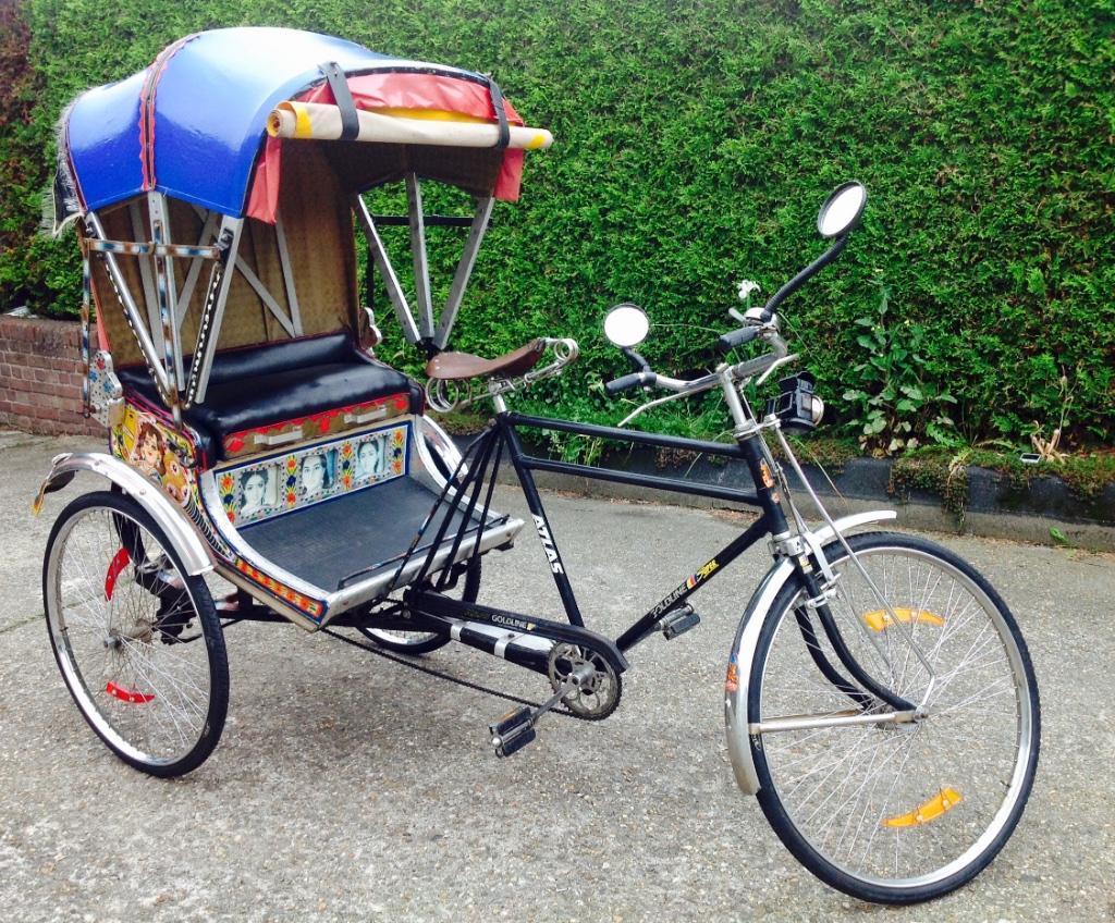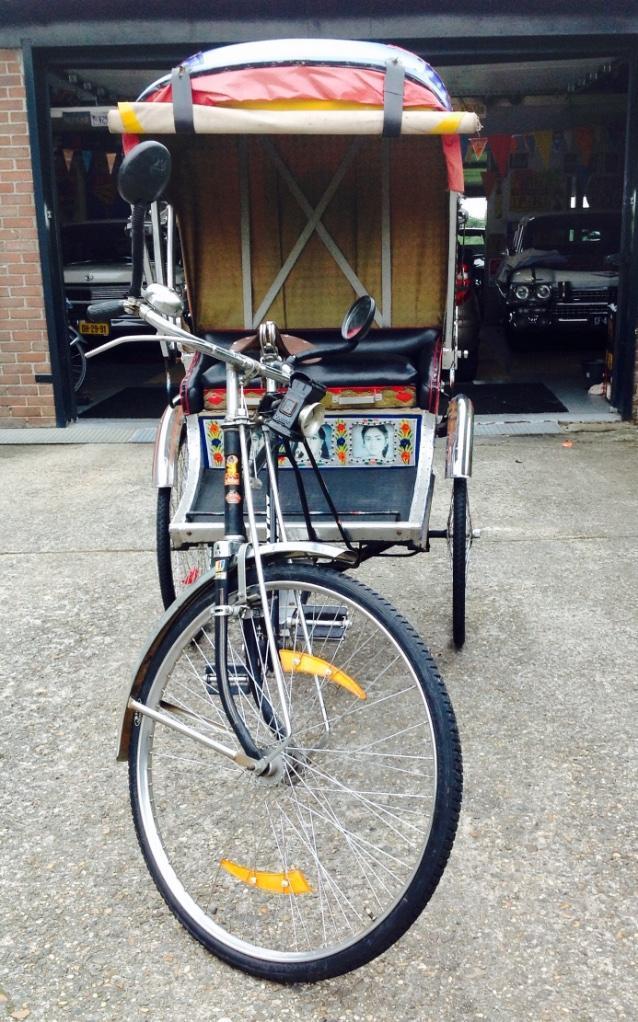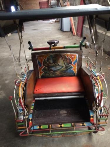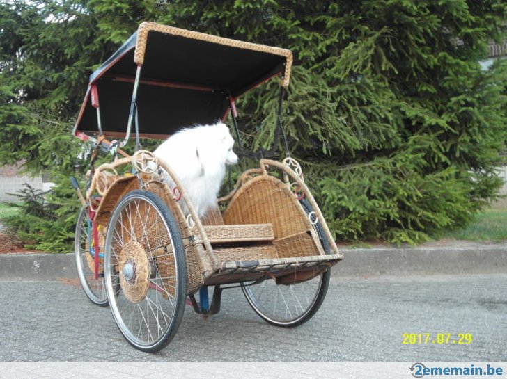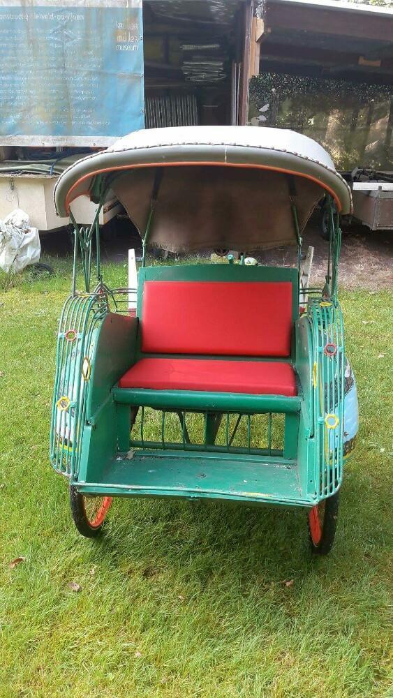 Notre avis : Rickshaw prétendument d'Indonésie (mais en réalité de Thailande) qui a l'air d'avoir survécu à quelques catastrophes naturelles. Beaucoup de travail à prévoir pour ceux qui aiment rouler avec les passager derrière.