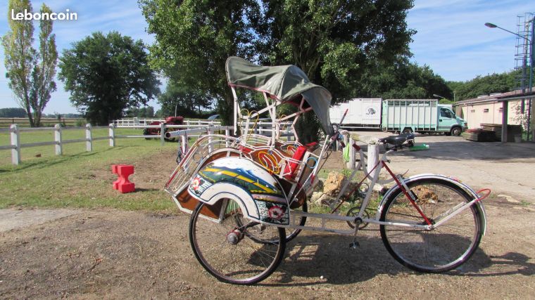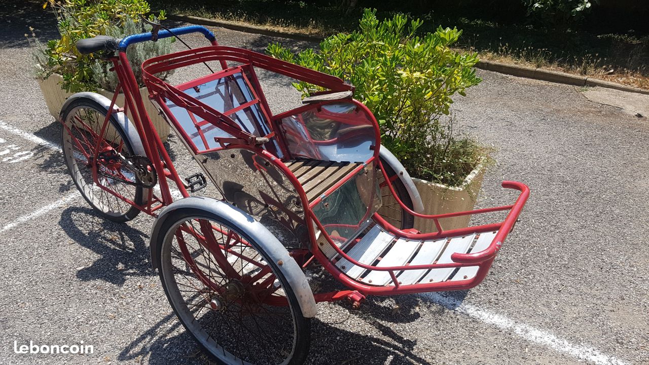 Notre avis : Beau travail sur ce vélo et très bel état général pour ceux qui aiment les rickshaws conduits à l'avant. Probablement cher.