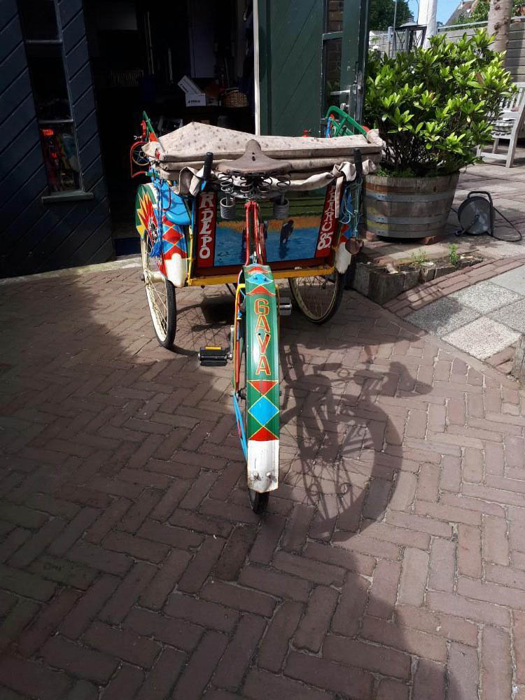 Notre avis : Trishaw assez rare de Singapour à un très bon prix. Un excellent plan (le vélo peut-être remplacé par un vélo à assistance électrique), meême si ces modèles sont un peu techniques à conduire. Nous l'aurions acheté s'il n'était pas aux Pays-Bas...