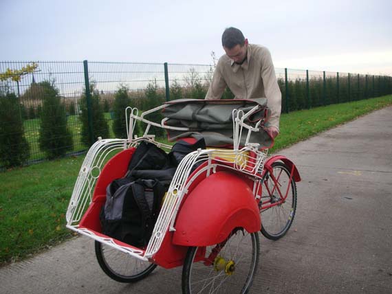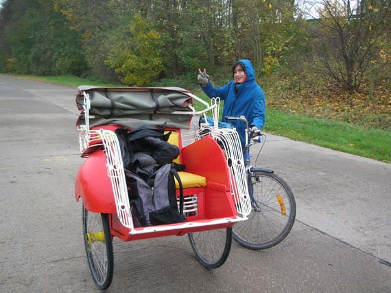 Nous achetons le vélo d'Indonésie près de Liège. Malgré la tempête et les conseils de prudence de nos collègue (ce qui nous motive encore plus à vrai dire), nous arrivons à le rapatrier jusqu'à Tienen. Le reste du trajet sera fait en camionnette, merci J!