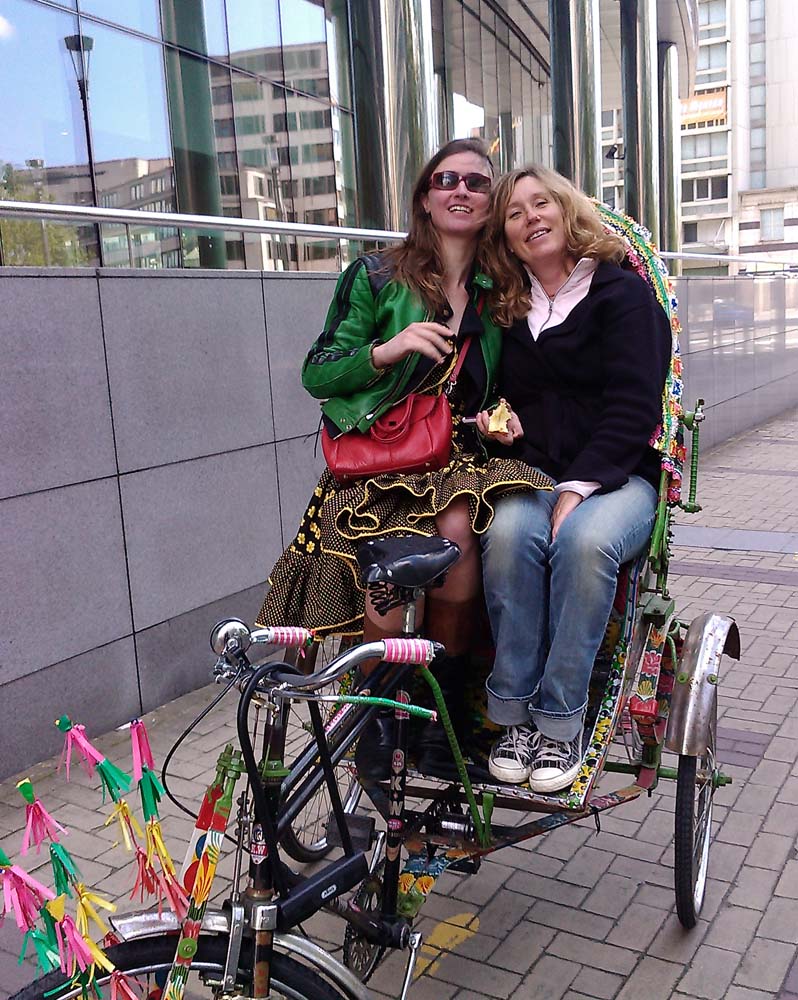 Sur le chemin du retour pause et discussion avec une sympathique personne du Bengladesh, discussion pendant laquelle des 'clientes' spontanées demandent de faire un petit tour. Nous redescendons la rue de la Loi et j'en profite pour pratiquer un peu le néerlandais.
