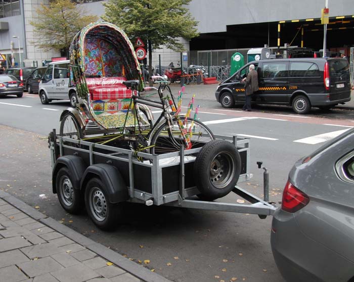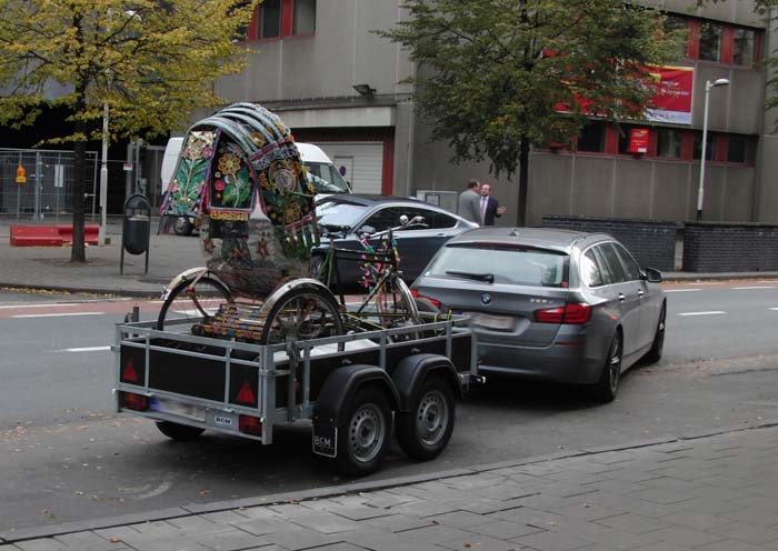 Notre rickshaw voyage cette fois-ci en voiture pour se rendre à un photoshoot chic et choc. C'est la larme à l'oeil que nous le voyons partir en BMW, en espérant que ça ne sera pas son dernier voyage.