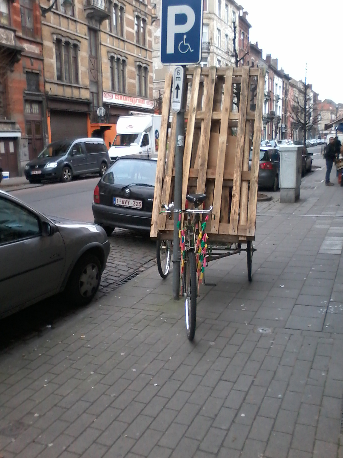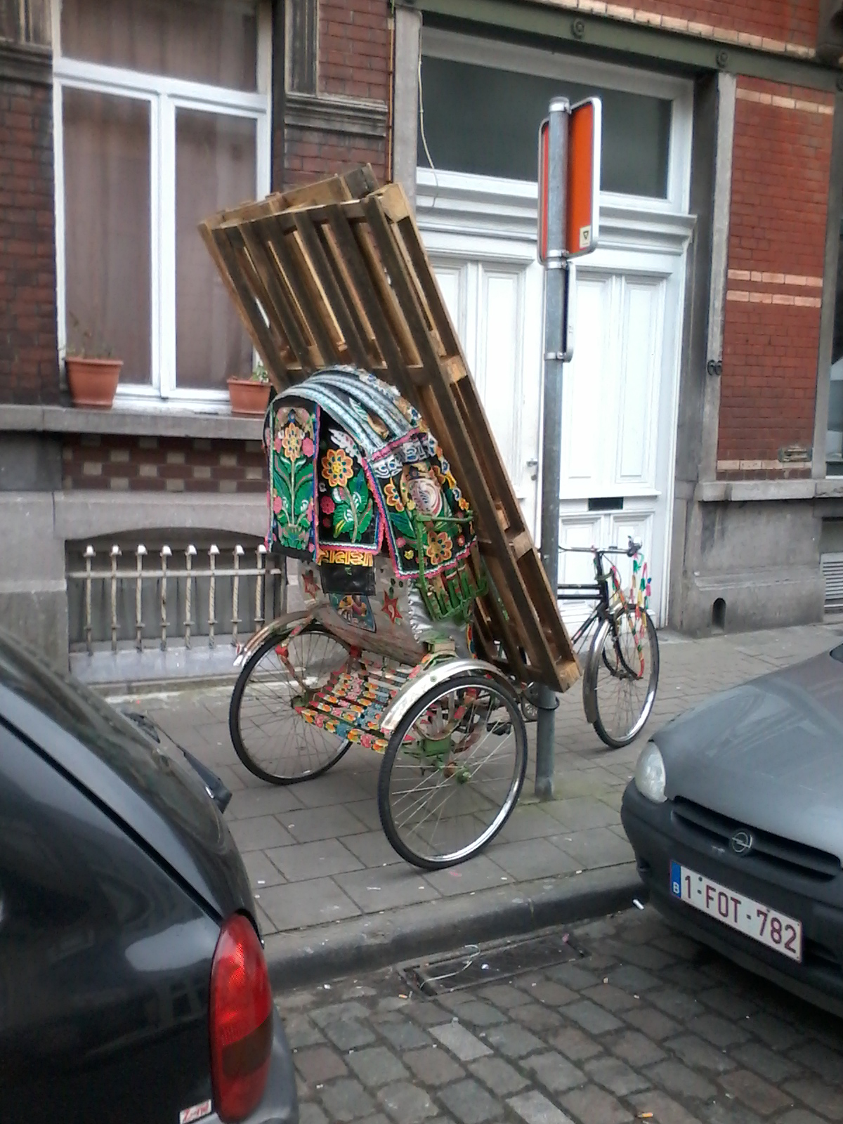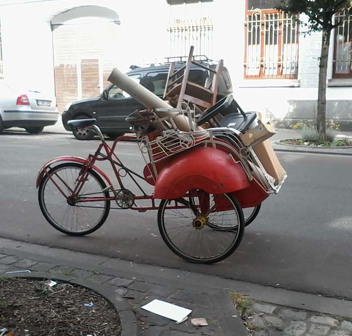 Un pousse-pousse peut aussi servir à transporter des palettes à la déchetterie.