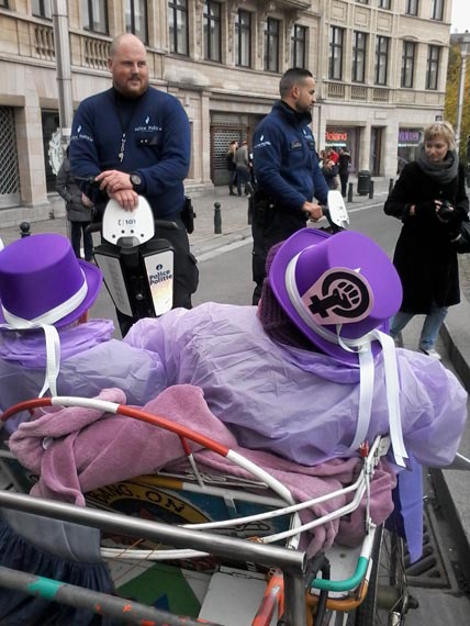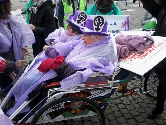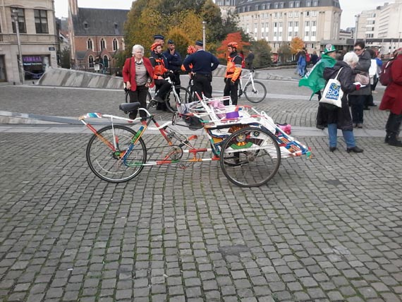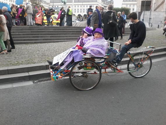 Cortège féministe à. C'est un futur pompier qui conduit le vélo et permet à des personnes âgées de suivre le cortège.