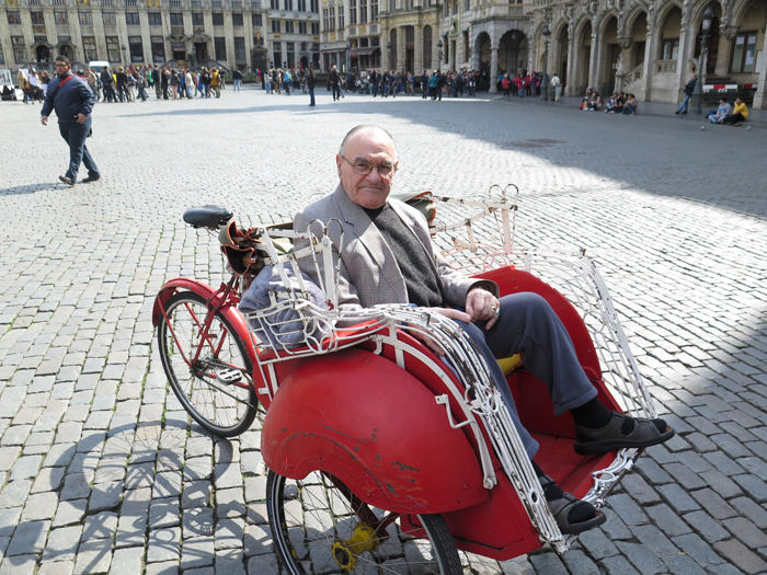 | RobertRobert vient d'Alsace mais cela fait longtemps qu'il habite à Bruxelles. Il a d'abord été au CPAS Pacheco, puis au CPAS Ursulines, qu'il préfère. Il nous raconte qu'il y a une soixantaine de résident aux Ursulines, dans des chambres de 1, 2 ou 3 personnes. Lui a une chambre individuelle et a une télé.Il se promène souvent, le dimanche il va parfois jusqu'à la Gare du Midi et une fois par semaine il va acheter des fruits chez l'épicier avenue Stalingrad. Il achète aussi parfois du fromage chez Catherine. Comme il marche beaucoup, il connaît bien le Centre de Bruxelles, mais il est étonné de voir des fleurs devant la Bourse (NDA : les hommages aux victimes de attentats). Il se demande si les fleurs sont surveillés la nuit pour qu'on ne les vole pas. Il trouve aussi qu'il y a beaucoup de vélos. A la Grande-Place, il remarque que les gens sont bourrés. |
