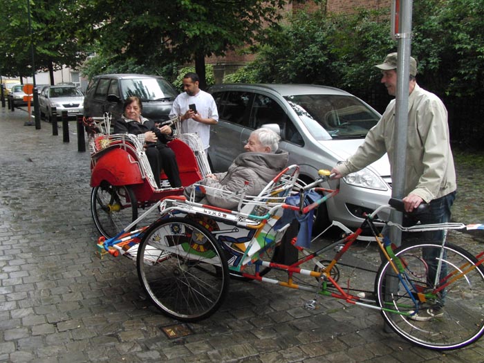 Sorties en cyclo-pousse avec des personnes âgées - Rickshaw rental in Brussels and Copenhagen - Location de pousse-pousse et cuistax à Bruxelles et Copenhague- Riksja en kwistax-gocart verhuur in Brussel - Rickshaw udlejning i København Rickshaw photobooth-Photomaton, rickshaw karaoke www.frickshaw.org - tel : +32 (0)4 93 66 57 14 - contact - agenda - fietsen-bikes-vélos-cykel - Rickshaws on the web - Résultats-Results