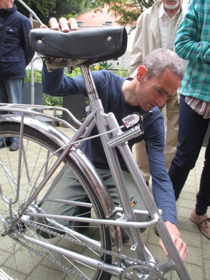 Présentation du nouveau cyclo du Vietnam et explication du projet '3e Age, 3e Roue' au Centre 3e Millénaire. Ensuite petits tours avec les habitués du lieu dans le jardin calme du Centre. Merci à O. et L. pour leur invitation!